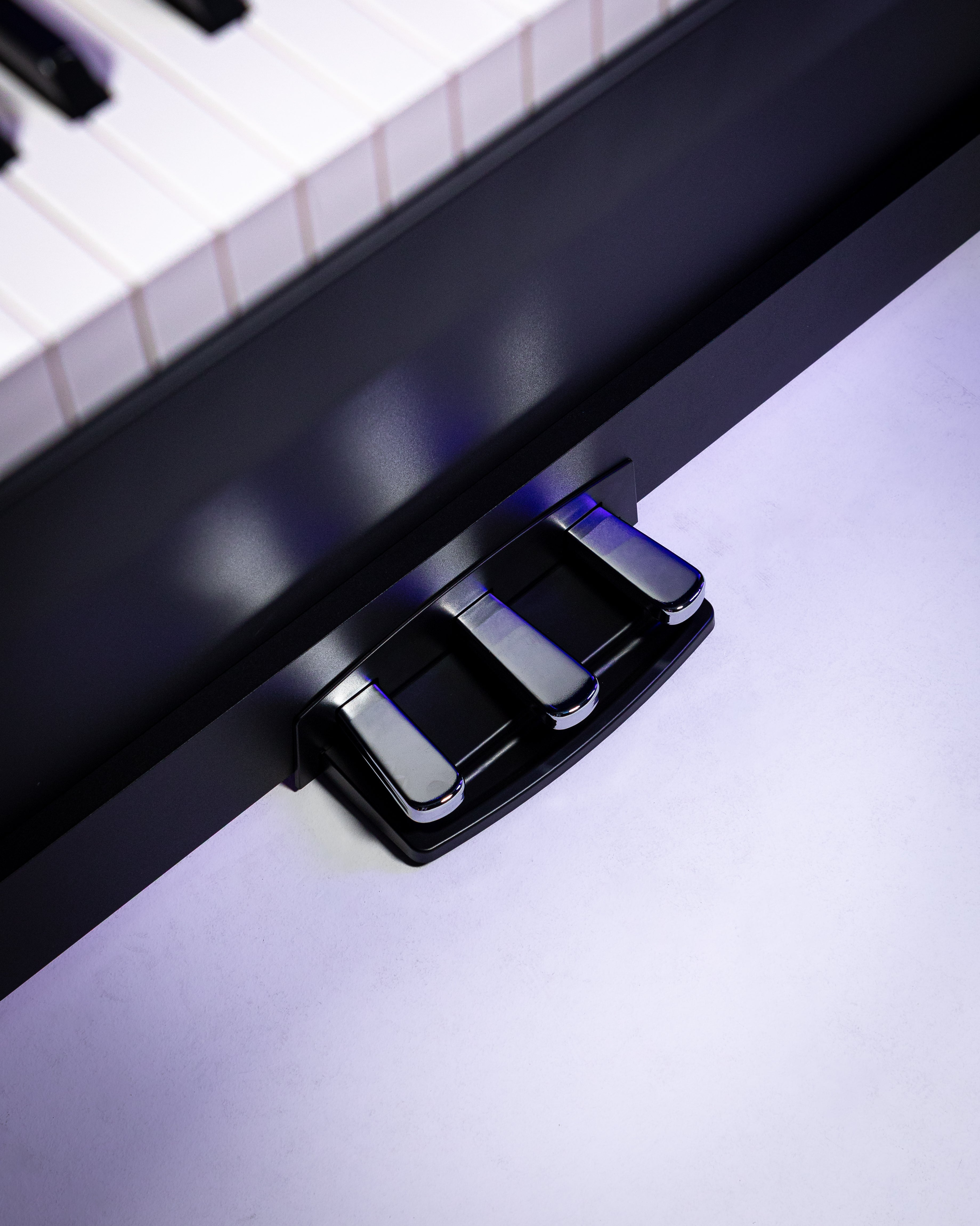 - A three-pedal unit attaches to the stand.